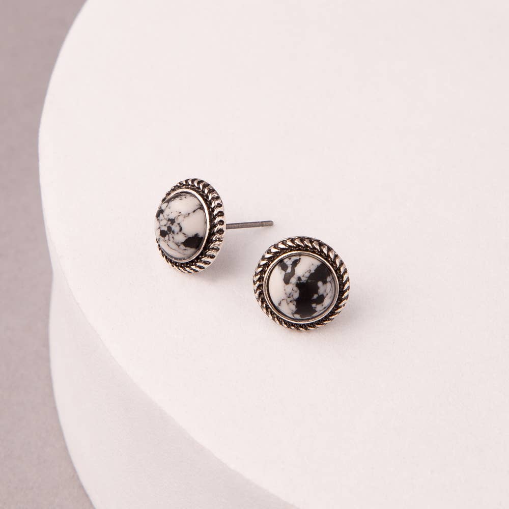 Western Button Post Earrings : White
