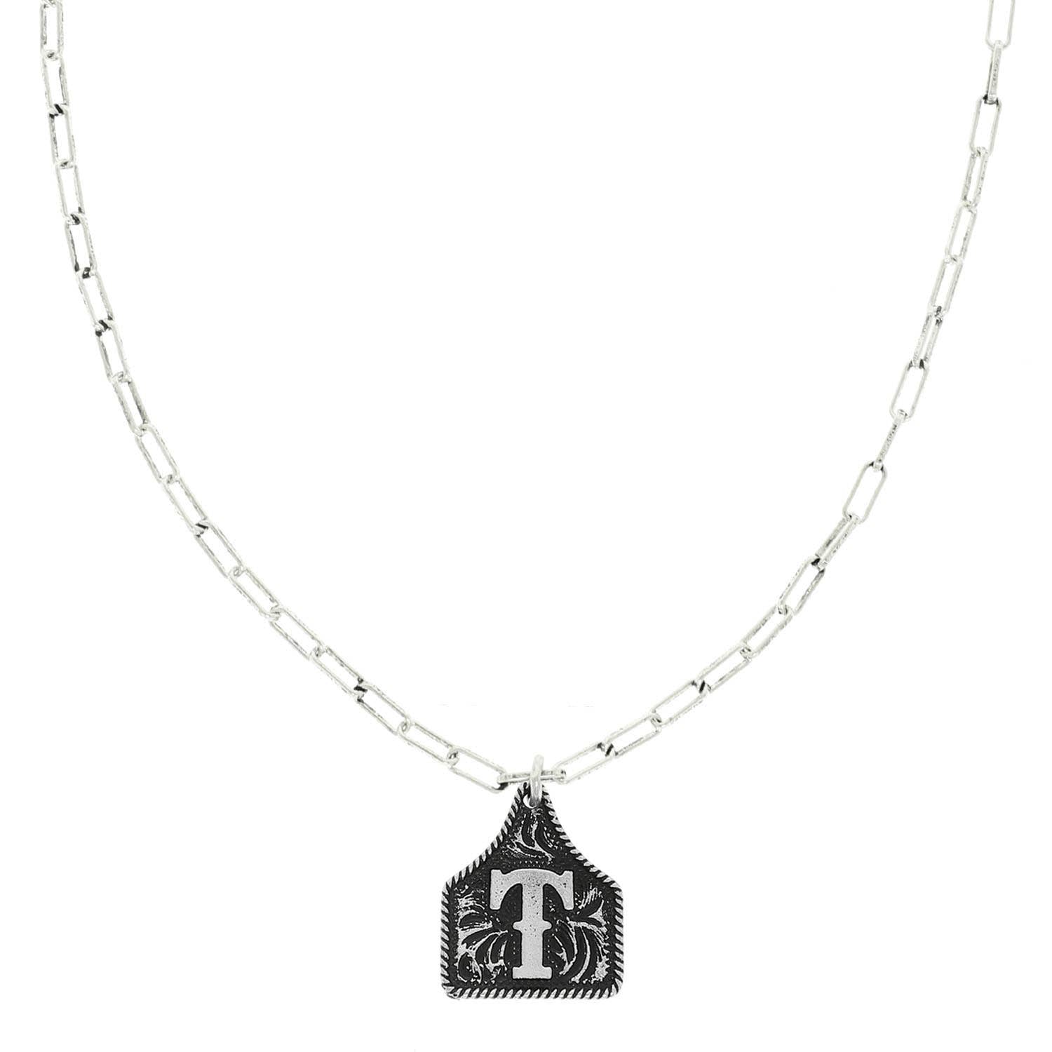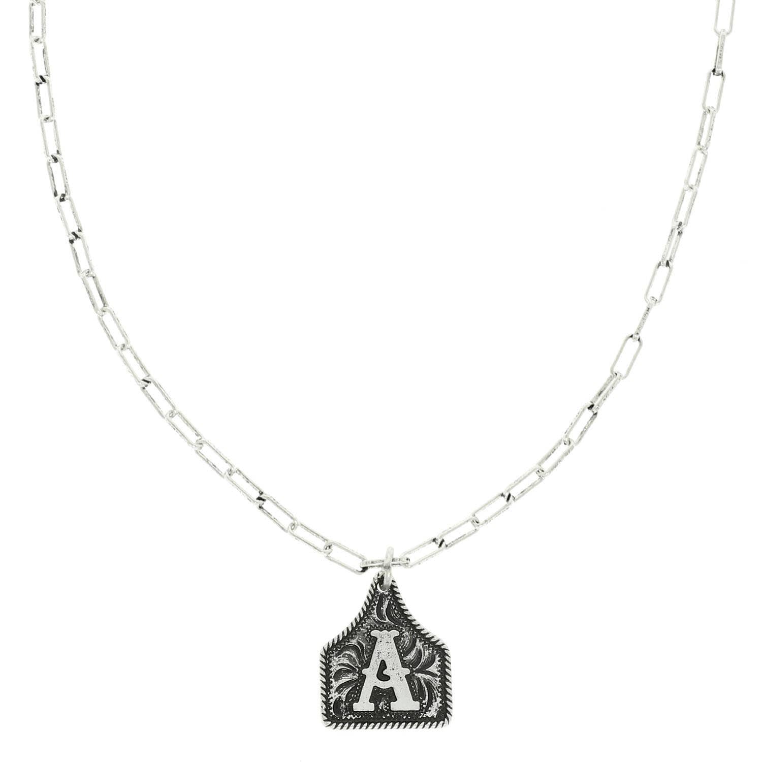 Western Letter Initial Etched Cattle Tag Pendant Necklace