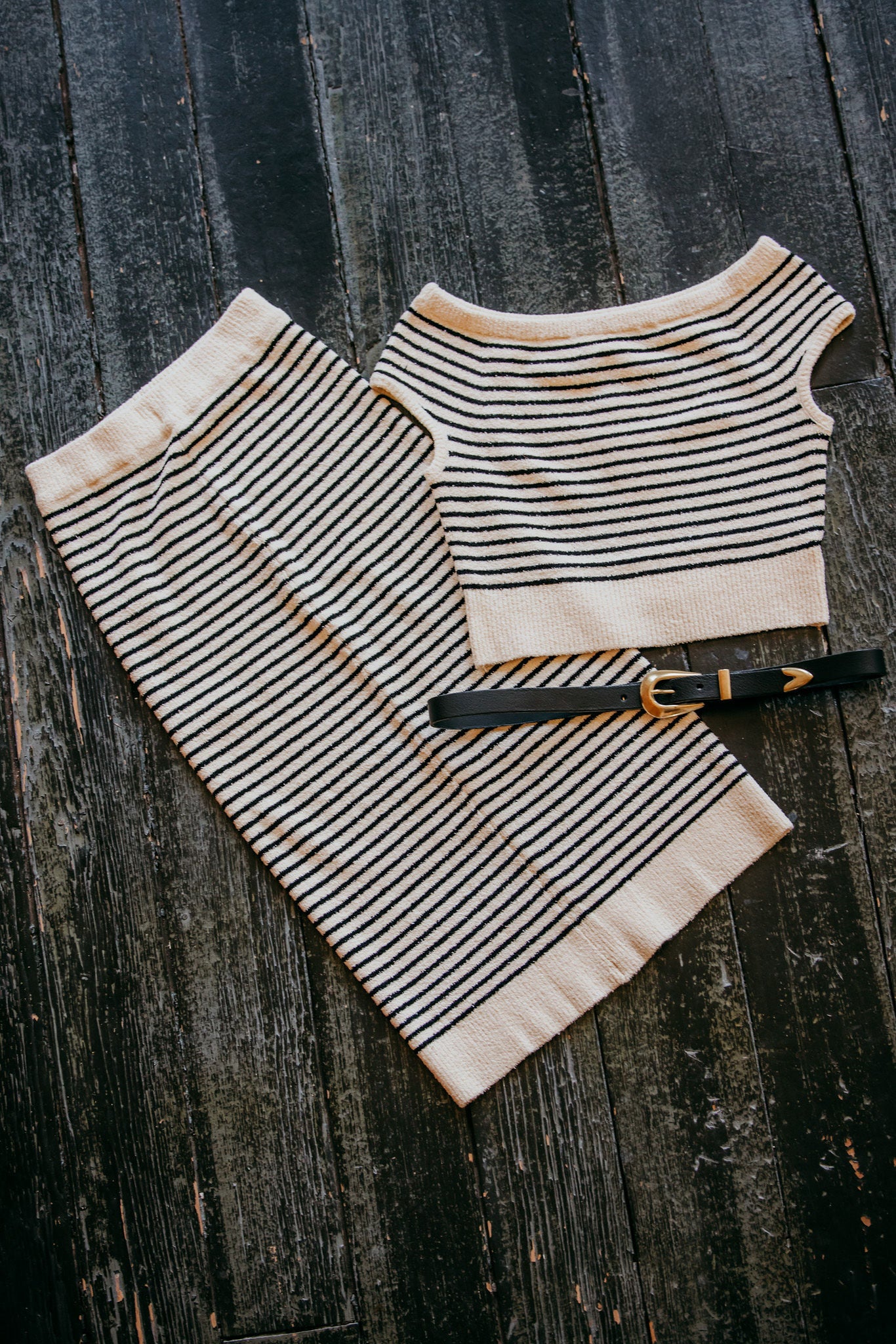 Floral Stripe Puff Sleeve Round Neck Top: Black Stripe