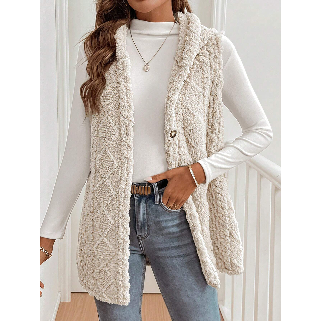 Reversible Fleece Casual Hooded Zip-Up Vest GSS135: Apricot / S