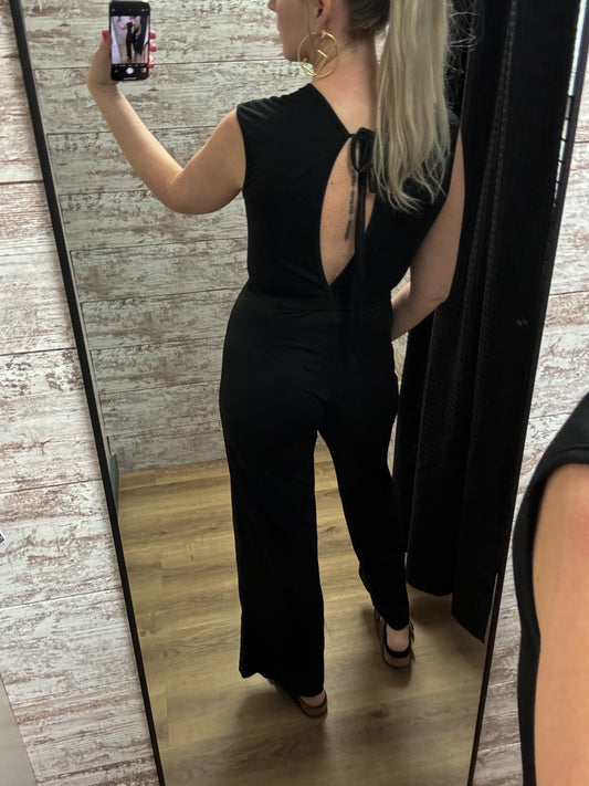 Twist Knot Wide Leg Round Neck One Piece Jumpsuit: Black