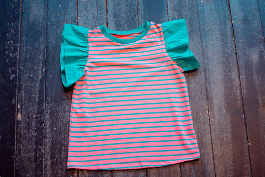Striped Ruffled Sleeve Crew Neck Blouse