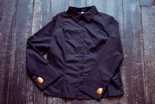 Long Sleeved Loose Buttoned Lapel Blouse Top